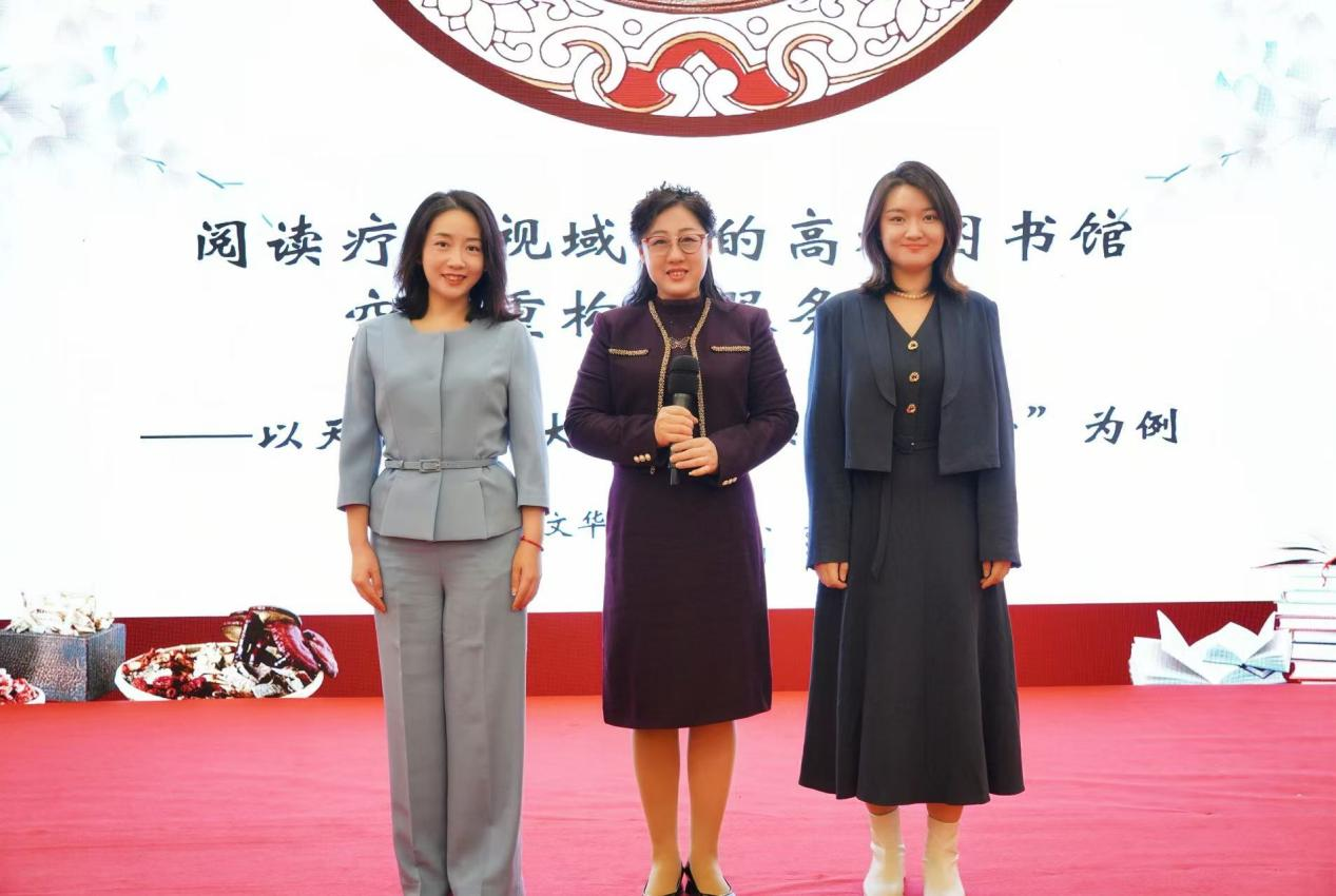 图书馆副馆长肖文华、馆员李媛媛应邀参会,并与天津海河传媒中心音乐广播主任编辑陈凌灵,共同作了题为《阅读疗愈视域下的高校图书馆空间重构与服务创新——以天津理工大学“悦读怡神之轩”为例》的案例分享。