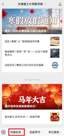 1. 关注“天津理工大学图书馆”微信公众号。